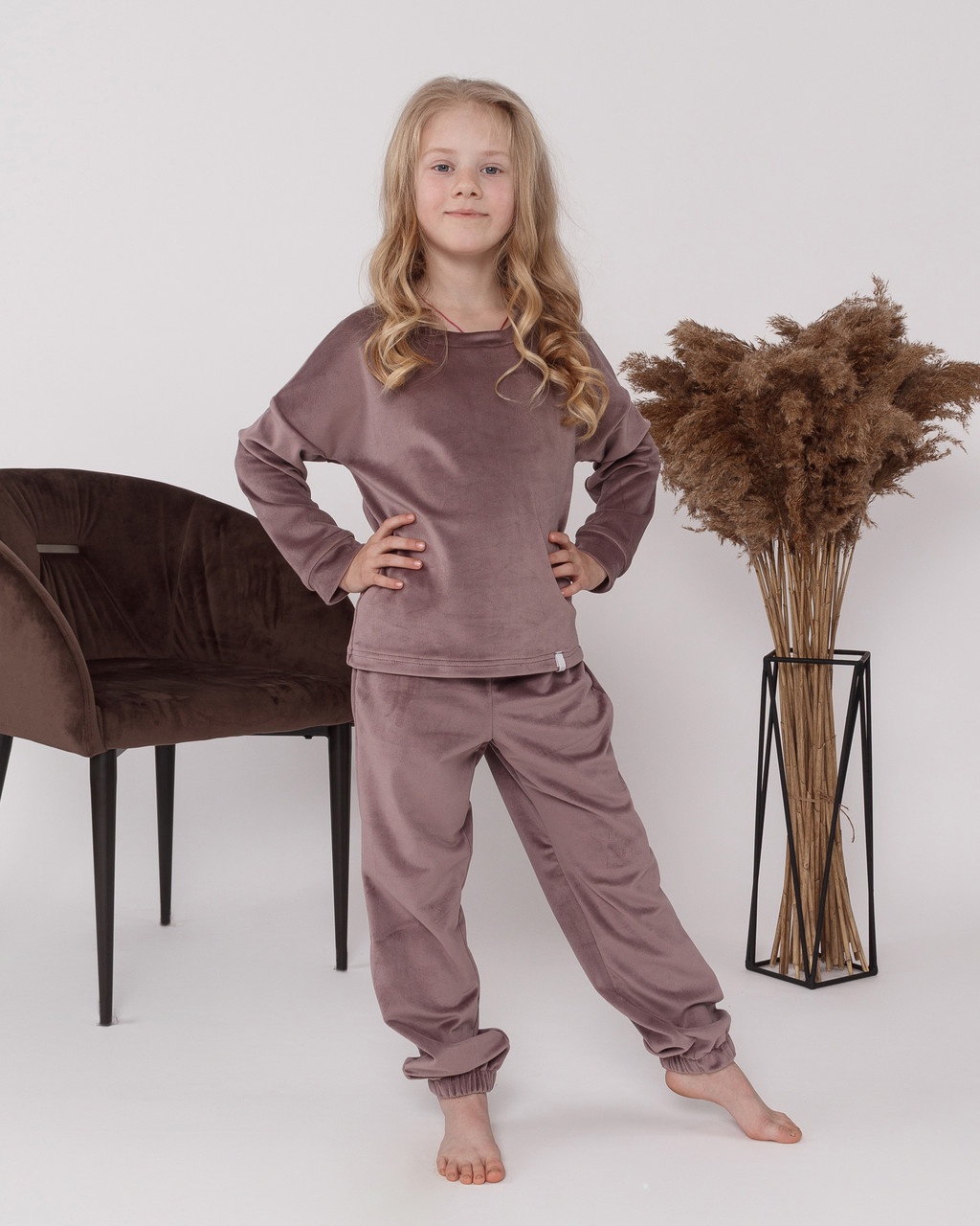 Піжама дитяча домашня велюрова кофта зі штанами Мокко